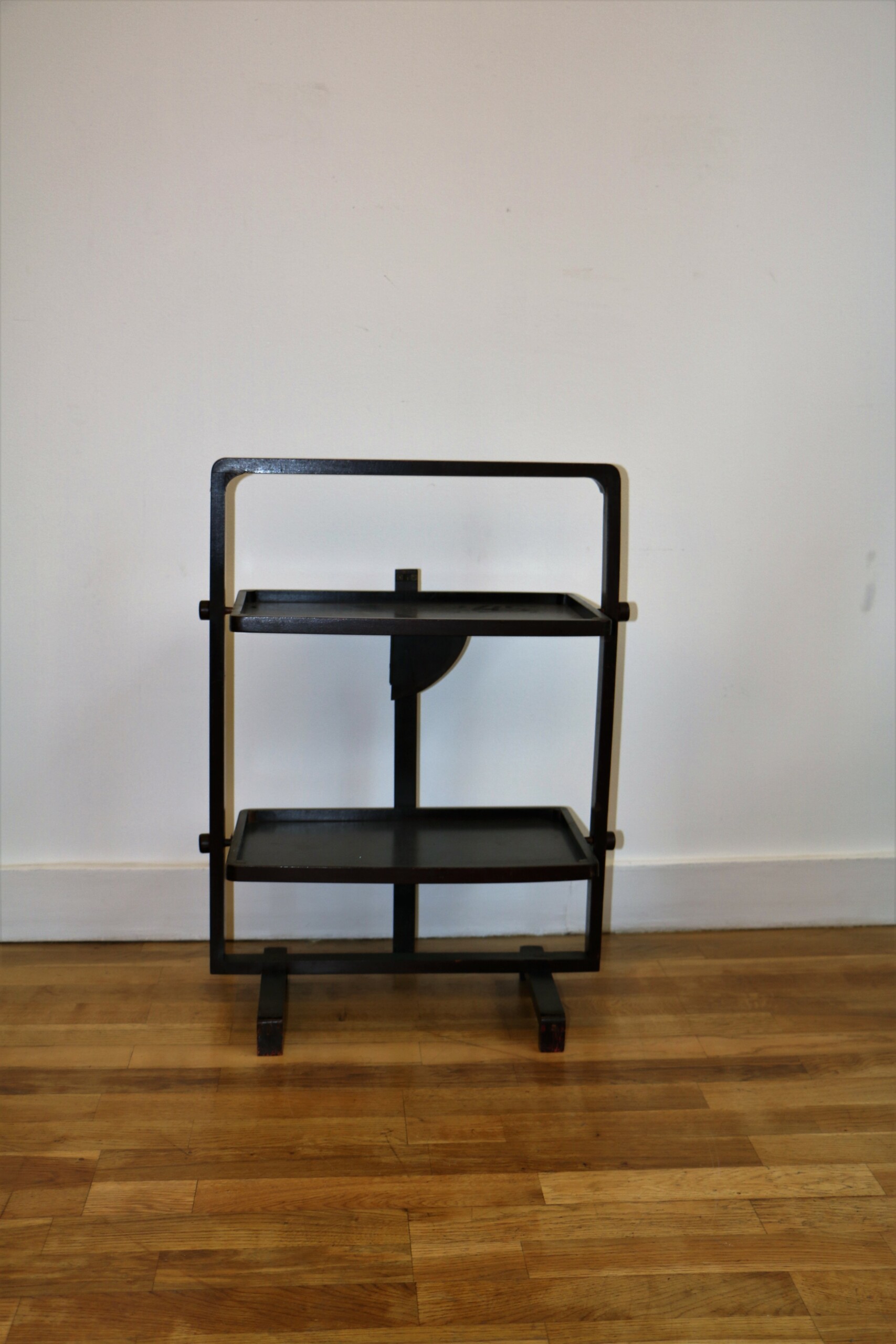 - Geisha serving cart in stained wood with two trays.