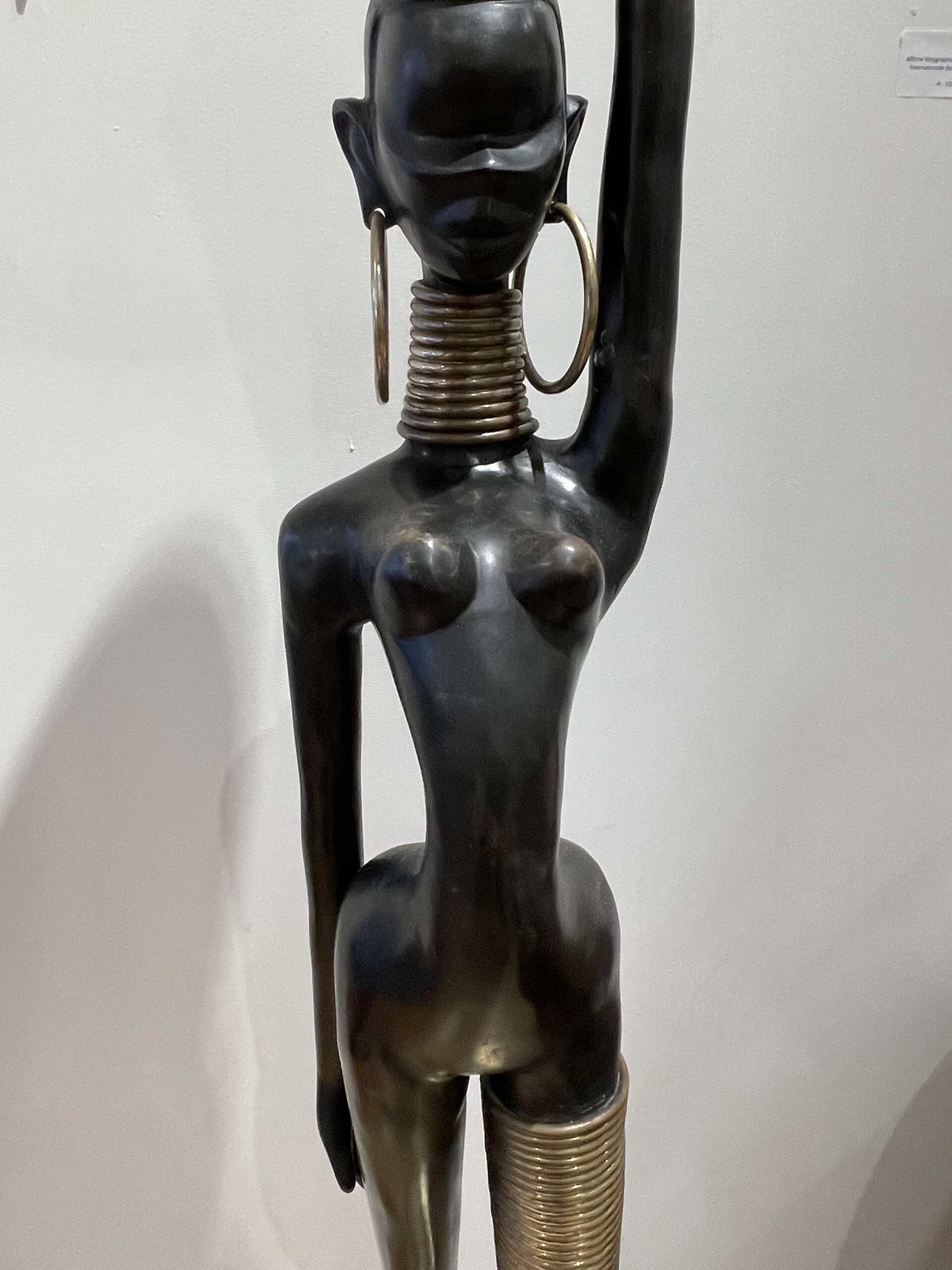 Stunning Bronze of an African lady carrying water, in the style of Karl Hagenauer (1898-1956), 1970’s, Bronze with double black and gilt patina, pierced for electrification